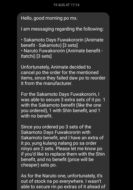 We were informed last August 19, 2025 that Animate cancelled 6 orders because they failed to reorder from the manufacturer.We inquired with other sources regarding backorders/extra slots but were told by September 10, 2025 that they were unable to confirm our order.Please contact varerir on Twitter for the refund form link. You may track our refund progress here.